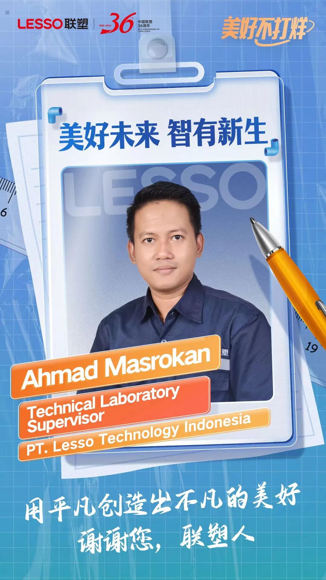 I joined Lesso on 29 January 2020 when Lesso was still in the Semarang Temple Industrial area, where Semarang is one of the largest cities in Indonesia. Joining the technical laboratory team makes me enthusiastic to be able to contribute to the company, because we have the responsibility to develop and maintain product quality.