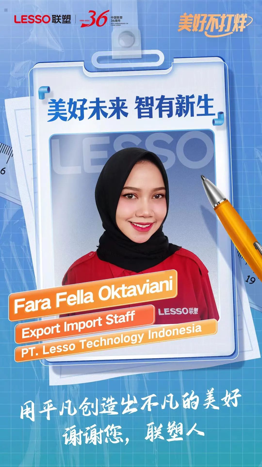 I feel that the working atmosphere at Lesso is very conducive and comfortable where almost 85% of the employees are under 30 years old (between 18-29 years old) and have lots of ideas and positive energy for the company.